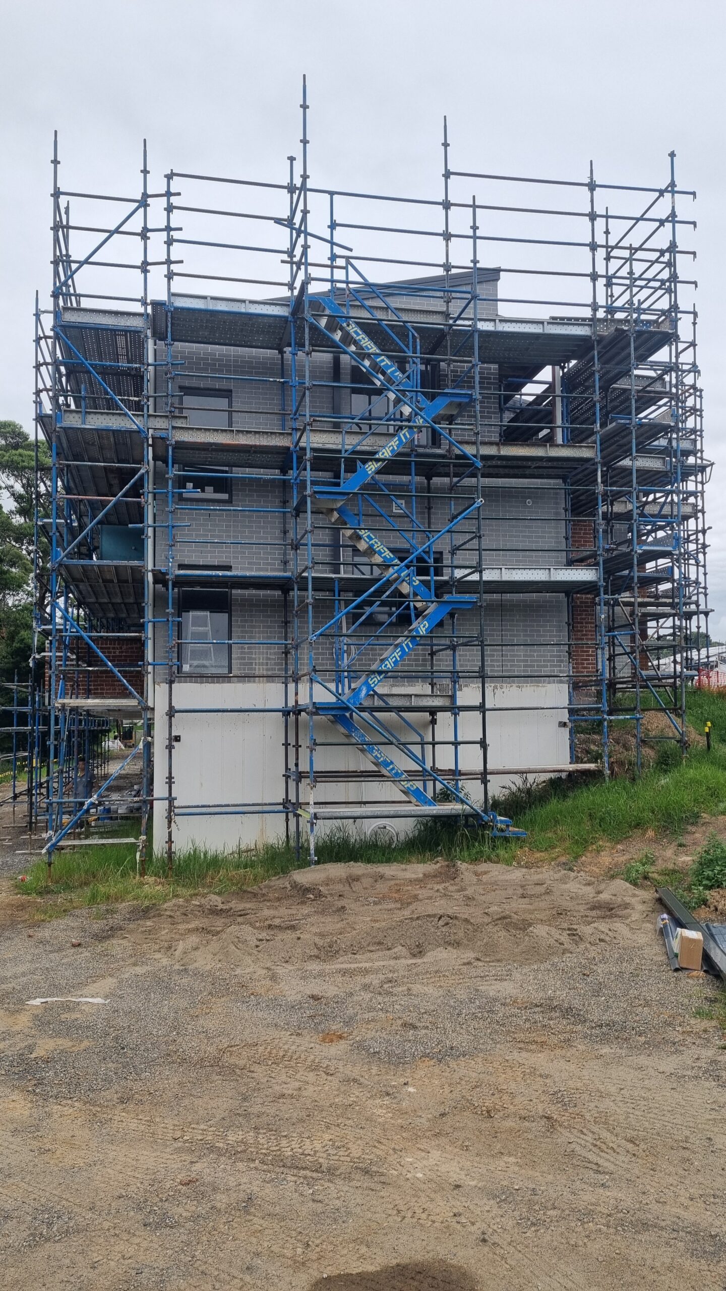 3 Story Duplex where scaffold was required for roof catch, external cladding and rendering. Built for Diversified Group.