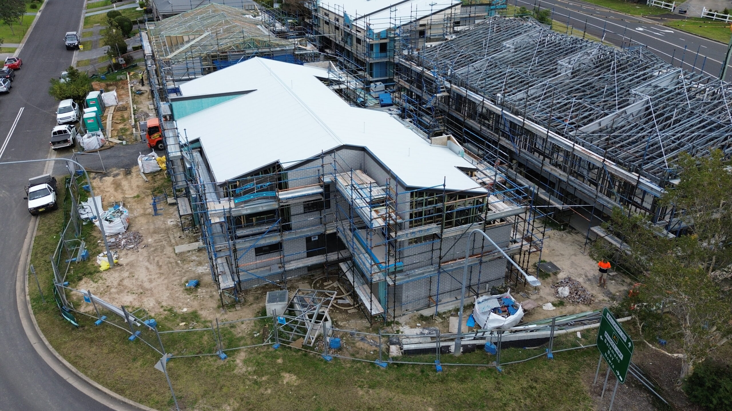 13 units in Ulladulla over 4 buildings all at different stages for roof catch, external cladding, brick work and rendering. Built for Wisdom Homes.